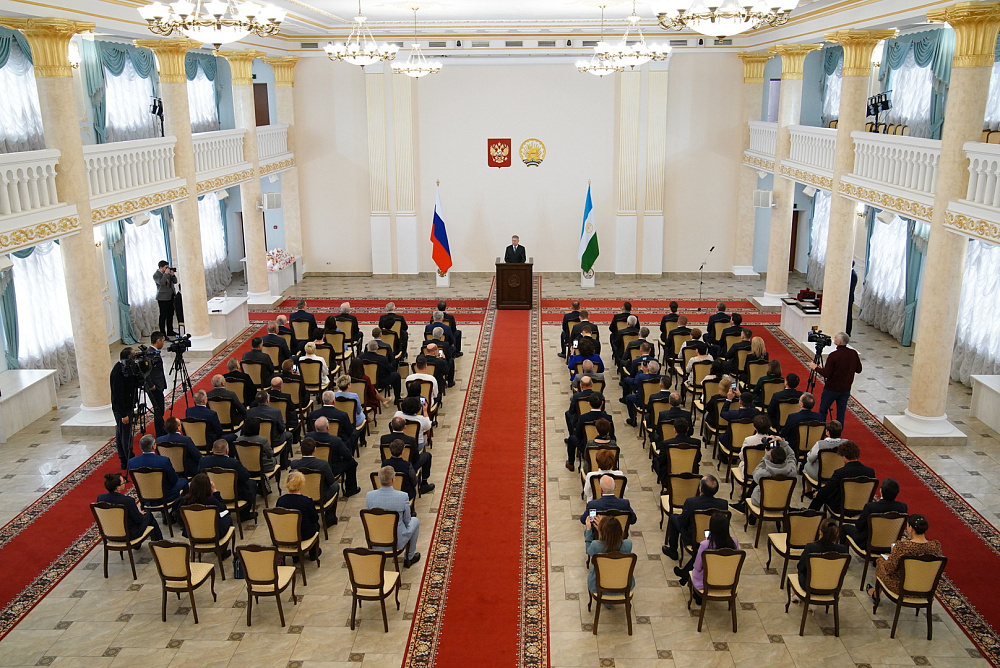 Торжественная церемония прошла 4 марта в Уфе. 4 марта в Уфе глава республики Радий Хабиров вручил государственные награды России и Башкортостана. Орденами и медалями, почетными званиями, грамотами и благодарностями отмечены достижения руководителей промышленных предприятий, государственных служащих, ученых, аграриев, инженеров, рабочих, учителей, врачей, деятелей культуры и других специалистов. Руководитель региона рассказал некоторых награжденных. – Более 40 лет спасает жизни, помогает беременным с патологиями известный в республике врач Альфия Галимовна Ящук. Ей присвоено почетное звание «Заслуженный врач Российской Федерации», – говорит Хабиров. – Научные исследования Альфии Галимовны широко известны среди профессионалов. Она активно делится опытом с российскими и зарубежными медиками. Профессор Уфимского университета науки и технологий Игорь Васильевич Александров – гордость нашей науки, признанный исследователь наноструктурных материалов. Он входит в сотню лучших ученых мира в обл