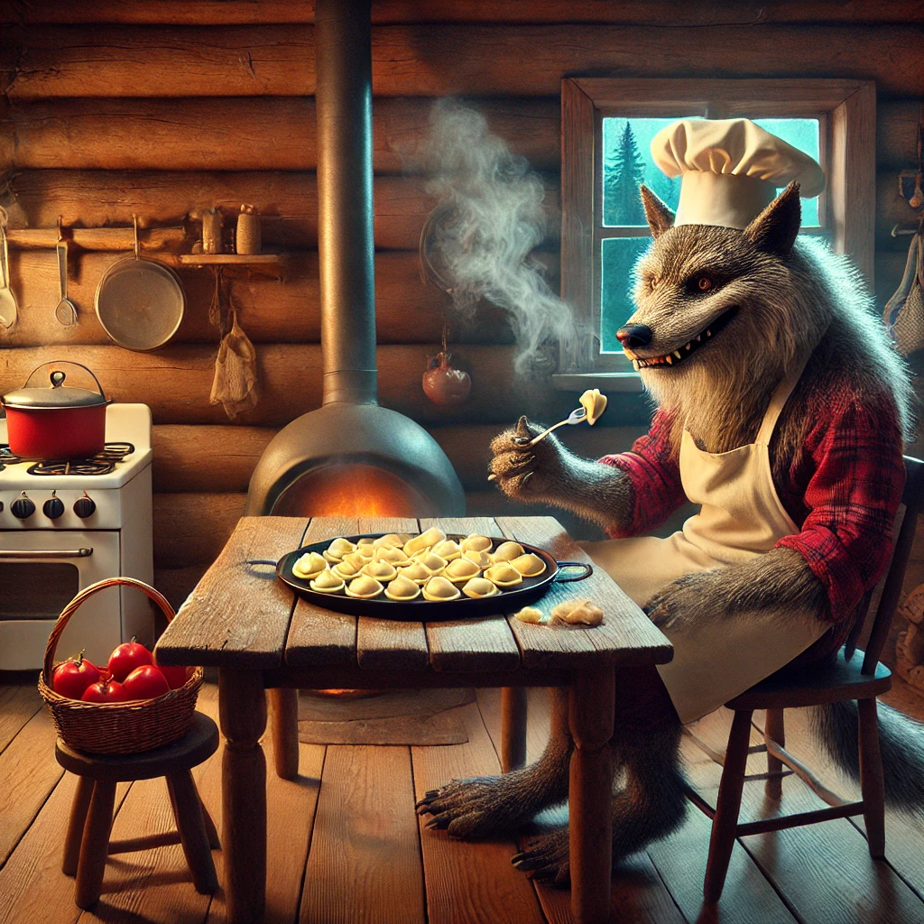 Жили-были три поросёнка: Ниф-Ниф, Нуф-Нуф и Наф-Наф. Были они весёлыми, беспечными и очень любили играть. Но однажды старший брат Наф-Наф сказал: - Нам нужно построить домики, чтобы защититься от злого Волка. Ниф-Ниф И Нуф-Нуф заморачиваться сильно не любили и не хотели, поэтому построили себе домики из г.., ой, простите, один - из соломы, другой - из веток. А Наф-Наф был умнее: он сложил себе крепкий каменный дом. Волк в это время подумывал, чем он будет ужинать сегодня. Пошёл по лесу и увидел домик Ниф-Нифа: - Фу, да это же один вдох - и нет дома! Он дунул и соломенный дом разлетелся. Ниф-Ниф, визжа, побежал к брату. Вол пошёл следом за ним и вышел к домику Нуф-Нуфа. Увидев странное сооружение из веток, Волк снова фыркнул: - Два вдоха — и нет дома! Так и случилось: Ветер разметал тонкие ветки, а испуганные поросята кинулись к Наф-Нафу в каменный дом. Волк последовал за ними. Он подошёл к каменному дому, но не стал зря тратить силы. Вместо этого он сел на пенёк, достал поварскую книг
