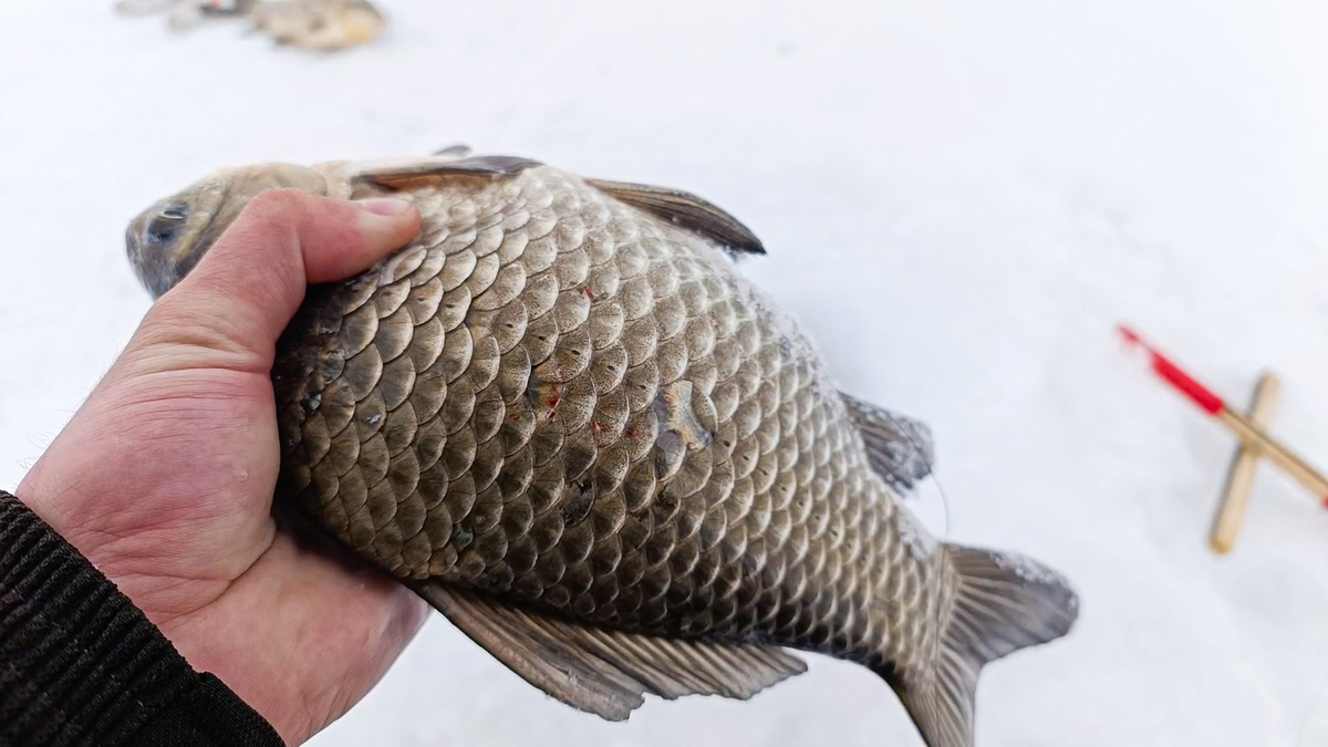 Ловится карась на стоячую снасть, без игры. И рыбалка выглядит так: просверлил, удочку поставил у лунки, и смотришь на кивок (либо поплавок). Пока не клюёт – ничем ты не занят. Ну, наживку сменил... В остальном – сидишь.