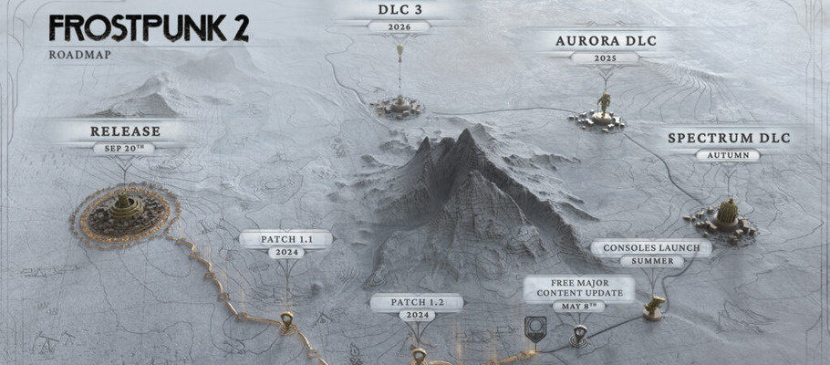 Спустя несколько месяцев после выхода последнего крупного обновления для Frostpunk 2 от компании 11 bit studios, разработчик опубликовал обновлённую дорожную карту, согласно которой следующее масштабное DLC выйдет 8 мая. Компания также подтвердила, что версии для Xbox Series X/S и PS5 выйдут этим летом. Осенью выйдет первое платное DLC, Spectrum, которое, как утверждается, расскажет больше подробностей о жителях великого города выживших. Второе платное DLC, Aurora, также выйдет в этом году, а третье, пока ещё безымянное, – в 2026-м. С момента запуска Frostpunk 2 на PC градостроительная игра на выживание разошлась по миру тиражом более 500 тысяч копий и получила довольно высокие оценки как от профессиональных критиков, так и от рядовых игроков.