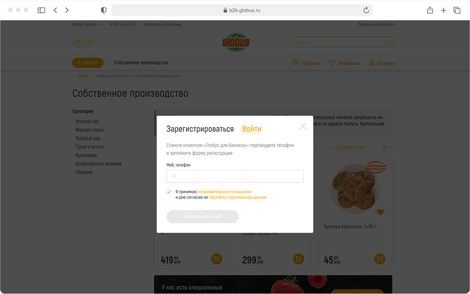 Сеть гипермаркетов «Глобус» наш постоянный партнер. За 11 лет мы успели поработать над главным сайтом, праздничными лендингами, играми, онлайн-заказом, площадкой для поставщиков, ЭТП, UI-китом. Помимо розничной торговли, «Глобус» поставляет товары юридическим лицам. Для упрощения и оптимизации работы с b2b клиентами компания решила внедрить портал «Глобус для бизнеса». Мы разработали и запустили сервис. До запуска системы менеджеры «Глобус» работали с b2b-покупателями через почту и звонки. С появлением «Глобус для бизнеса» потенциальные клиенты могут зарегистрироваться и задать вопросы по договору. Действующие клиенты самостоятельно проходят регистрацию и запрашивают доступ к сервису. Администратор активирует профиль, а клиенту приходит письмо с подтверждением. Для менеджеров «Глобус» предусмотрено создание и активация нескольких пользователей с аналогичным номером ИНН. Потому что иногда в филиалах компании-покупателя закупки осуществляют разные сотрудники, которым нужны отдельные учет