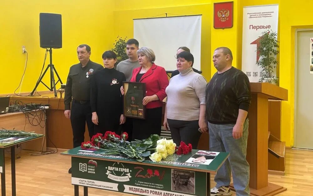 Память бойцов, героически погибших в ходе специальной военной операции, увековечили в среднеобразовательной школе №43 города Брянска. Роман Медведько погиб 12 января 2023 года в г. Кременная ЛНР, прикрыв собой своих товарищей, Виктор Киреев получил смертельное ранение 15 марта 2023 года, выполняя боевую задачу. За свои боевые заслуги перед Отечеством оба Героя были награждены орденами Мужества посмертно. На мероприятии присутствовали секретарь Бежицкого г. Брянска местного отделения «Единой России», глава Бежицкой районной администрации Татьяна Гращенкова, родители Героев, педагоги, учащиеся школы, другие гости. «Вечная память ребятам! Слова поддержки и благодарности родителям − спасибо вам за сыновей!», − сказала Татьяна Гращенкова. Фото: БРО ВПП «Единая Россия» Напомним, образовательный проект «Парта Героя», который запустила «Единая Россия» в рамках партпроекта «Новая школа», в доступной форме рассказывает школьникам о земляках, совершивших доблестный поступок и проявивших личное му