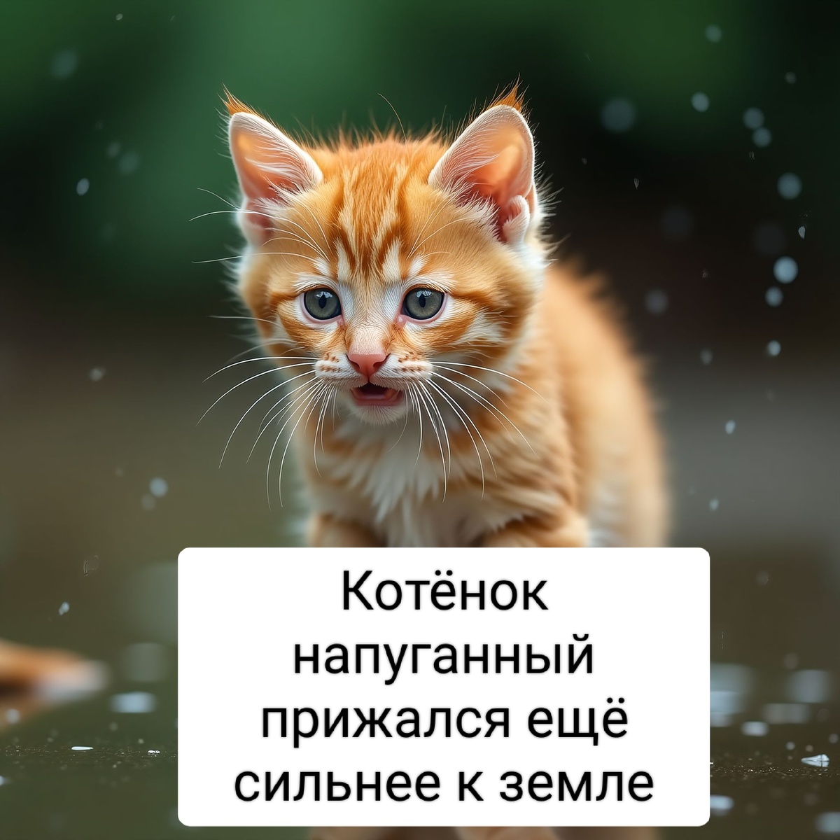 Дождь лил как из ведра. Ветер, пронзительный и холодный, гнал по мостовой листья, превращая их в мокрые лохмотья. Маленький рыжий котенок, размером с хорошую куклу, сжался в комочек под козырьком магазина, дрожа от холода и страха. Он был совсем один, мокрый до нитки, и его жалобный писк заглушался стуком дождя. Внезапно, из-под навеса соседнего здания выбежала девушка, зонт её защищал от дождя лишь наполовину. Она спешила куда-то, но, заметив котенка, остановилась. Её лицо, прежде напряженное, смягчилось. Она осторожно подошла к нему, присев на корточки. Котенок, напуганный, прижался ещё сильнее к земле. Девушка медленно протянула руку, тихонько приговаривая успокаивающие слова. Котенок, вздрогнув, принюхался к её ладони, а затем, как будто приняв решение, нежно ткнулся в неё своей мокрой головкой. Девушка бережно взяла котенка на руки, завернула его в свой шарф. В этот момент из магазина выскочил молодой человек, он держал в руках небольшой пакет с продуктами и обеспокоенно смотр