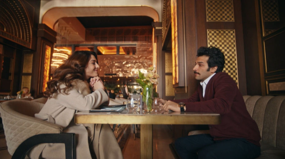 Кадир подходит к Наз и подобно фокуснику, достает из ее волос шоколадку. Наз смеется над фокусом Кадира и протягивает ему костюм.