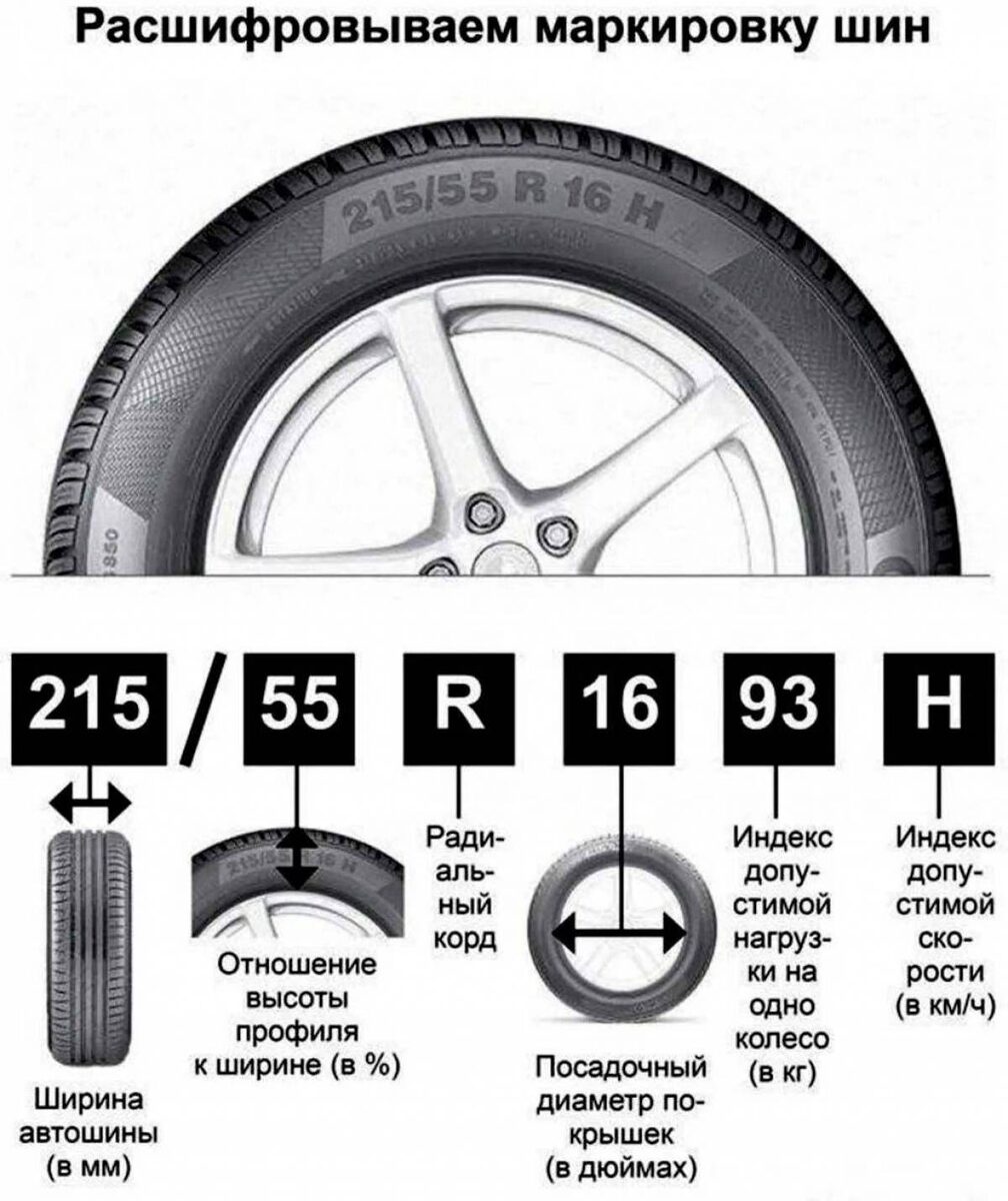 Размер шины указывается в формате, например, 205/55 R16, где: