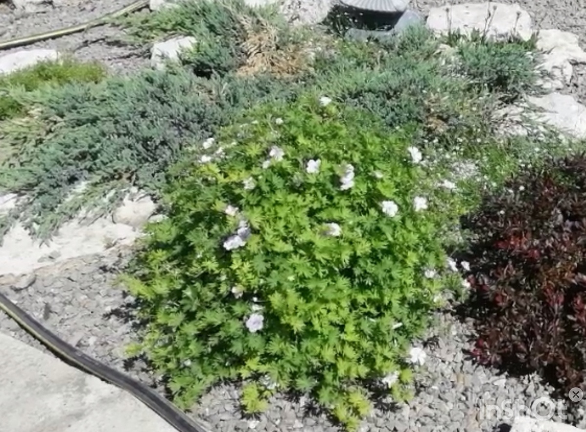 Многолетняя садовая герань — это неприхотливое и выносливое растение, которое прекрасно подходит для выращивания в саду. Она обладает красивыми цветами различных оттенков и декоративной листвой, что делает её отличным выбором для ландшафтного дизайна. Расскажу о садовой герани которая растет у меня в саду. При создании рокария я купила небольшой кустик герани с ажурными листочками. Она прекрасно прижилась в своем уютном гнездышке. Как будто всегда здесь росла. Садовая герань цветёт в течение длительного периода, начиная с весны и до осени. Цветы у меня розово - белые, очень хочу с голубыми цветочками. В зависимости от сорта, высота растений бывает от 15 см до 1 метра. Моя герань 15-20см высотой. Листья герани часто имеют красивую форму и окраску, иногда с мраморным рисунком. Они остаются декоративными даже после окончания цветения. Герань предпочитает хорошо дренированные, плодородные почвы. Она не требовательна к питательности грунта, но лучше всего растёт на умеренно влажных почва