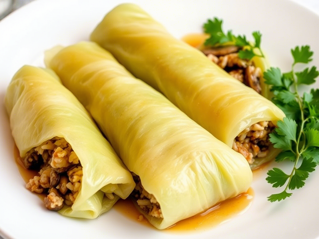 - Капусту разберите на листья, бланшируйте в кипятке.