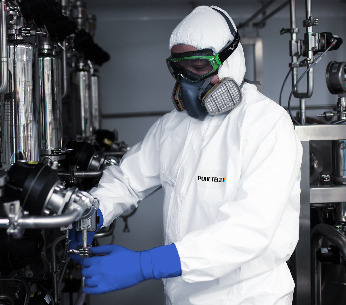 Защитные комбинезоны – это спецодежда, которая защищает от различных факторов и видов загрязнения. Чаще всего в работе применяются одноразовые комбинезоны, которые являются средством индивидуальной защиты. Они практичны, удобны, их легко подобрать под любую область работы с разной степенью защиты. В линейке защитной одежды нашей торговой марки Puretech® на данный момент есть пять комбинезонов из материалов разной плотности и классов защиты. Начнем с самого простого комбинезона в линейке комбинезонов Puretech®: Он обеспечивает защиту от общепроизводственных загрязнений. Материал спанбонд, из которого он сделан, легкий и дышащий, поэтому обеспечивает комфорт в течение всей рабочей смены. Он эргономичен, создает свободу движения и обеспечивает высокую мобильность пользователя. Сфера использования: малярные работы, автосервис, пищевая промышленность, клининг, складские помещения. Изготовлен из материала SMS, более плотный, чем предыдущий комбинезон, с низким ворсоотделением. Водо-и пылен