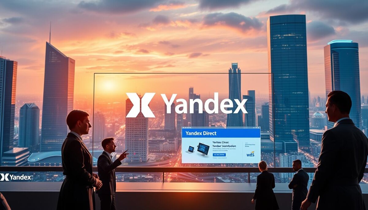 Современный, футуристический бизнес-ландшафт с логотипом Яндекса, занимающим видное место посередине. На переднем плане группа людей в профессиональной одежде проводит совместную встречу, указывая на большой цифровой дисплей, демонстрирующий партнерскую программу Яндекс Директ и дистрибуцию Яндекса. На заднем плане преобладают высокие небоскребы и яркий городской пейзаж, залитый теплым золотистым освещением, которое создает ощущение энергии и процветания. Общая композиция передает динамичную, инновационную и технологичную среду, идеально отражающую тему статьи "Партнерство с Яндекс Директ: исследуйте дистрибуцию Яндекса".Современный, футуристический бизнес-ландшафт с логотипом Яндекса, занимающим видное место посередине. На переднем плане группа людей в профессиональной одежде проводит совместную встречу, указывая на большой цифровой дисплей, демонстрирующий партнерскую программу Яндекс Директ и дистрибуцию Яндекса. На заднем плане преобладают высокие небоскребы и яркий городской пейзаж, залитый теплым золотистым освещением, которое создает ощущение энергии и процветания. Общая композиция передает динамичную, инновационную и технологичную среду, идеально отражающую тему статьи "Партнерство с Яндекс Директ: исследуйте дистрибуцию Яндекса".