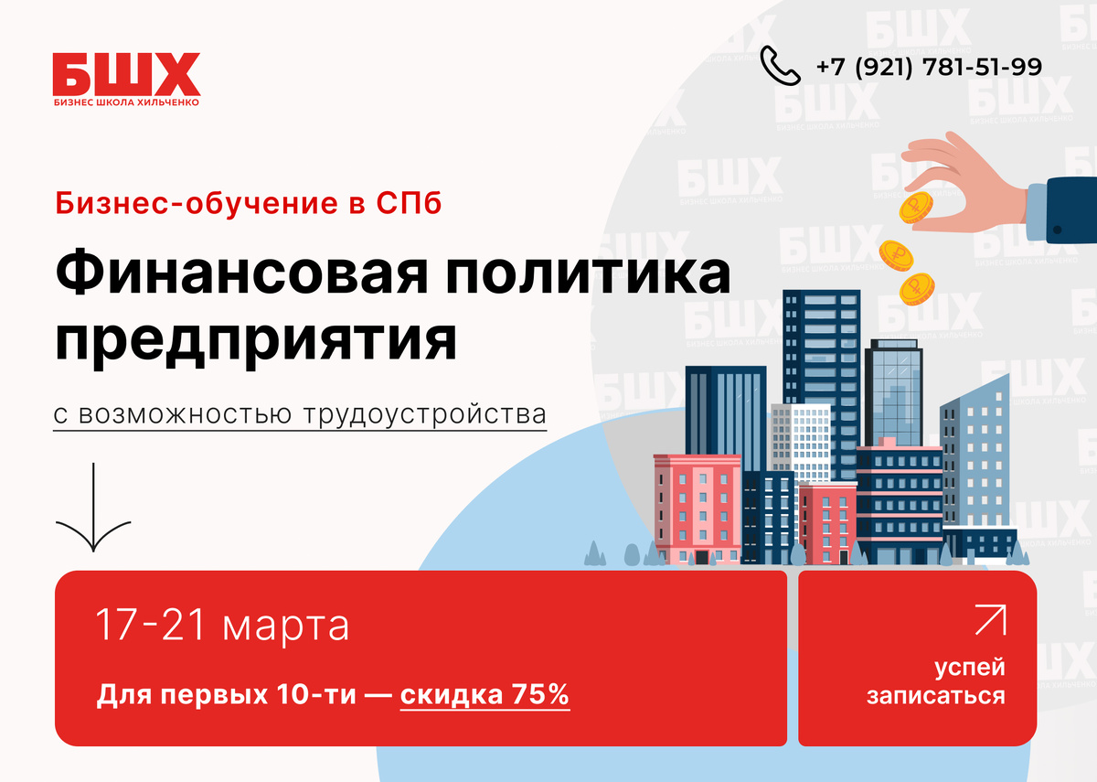 Бизнес-школа приглашает вас принять участие в президентской программе «Финансовая политика предприятия» по подготовке управленческих кадров. Мы также предоставляем бесплатные места на обучение по курсу, который охватывает следующие аспекты: 🔹 Разработка внешних и внутренних финансовых моделей для оптимального управления капиталом и прибылью; 🔹 Системы анализа, планирования и отчетности; 🔹 Идентификация проблемных зон в бизнес-процессах и стратегическое управление на основе финансовой документации. Программа ориентирована на целеустремленных специалистов, желающих развивать свои компетенции с перспективой дальнейшего трудоустройства в холдинг «Созвездие Водолея». - Стоимость: 240 тысяч рублей. - Скидка 75% (всего 60 тысяч рублей) для первых 10 участников. - БЕСПЛАТНО для владельцев и руководителей компаний с годовым оборотом свыше 500 миллионов рублей. Занятия проходят в небольших группах (до 20 человек), что гарантирует персонализированный подход и высокую результативность обучения.