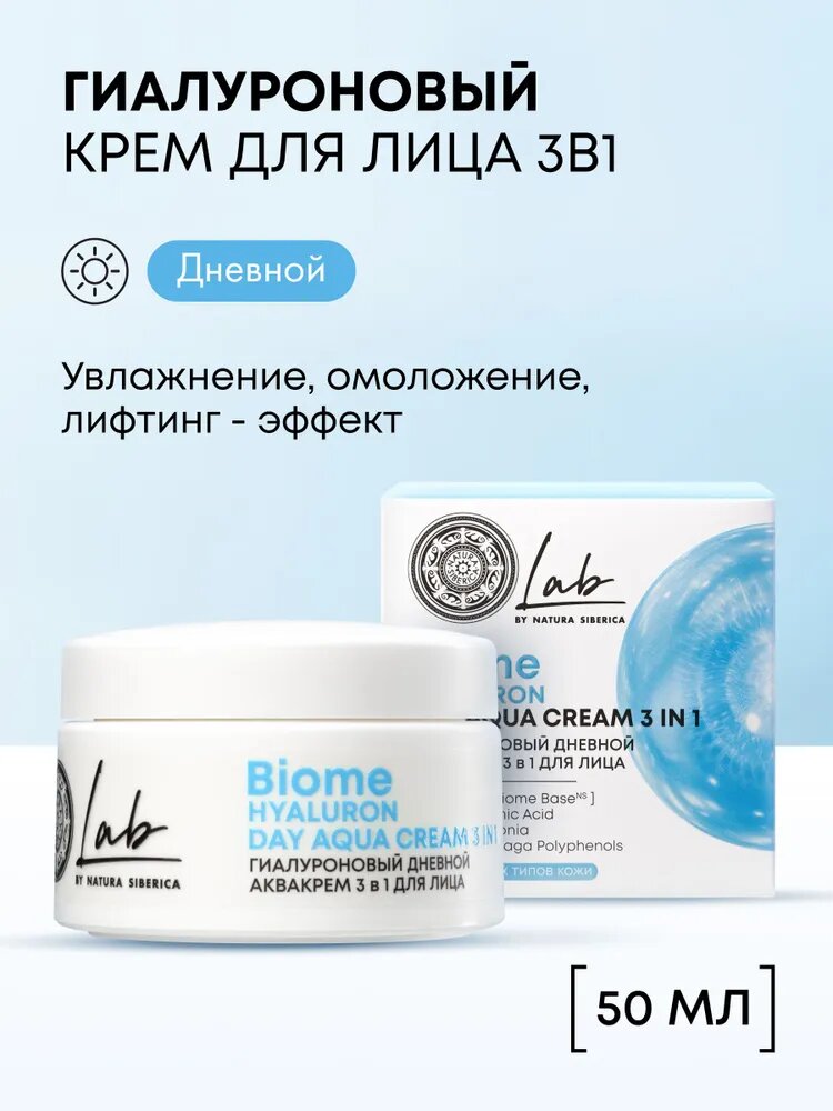 Разберем состав крема Natura Siberica Lab Biome Дневной аква крем 3 в 1 для лица гиалуроновый увлажняющий, омолаживающий антивозрастной лифтинг от морщин 50 мл