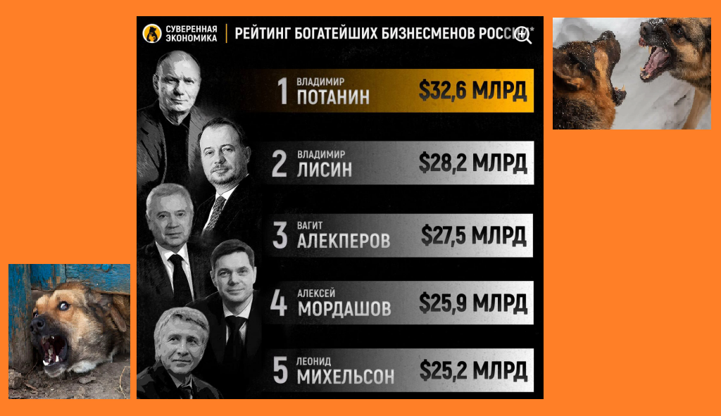По последним данным Bloomberg, капитал богатейших россиян с начала 2025 года увеличился на $7,764 млрд. Лидирует в таком скоростном обогащении Алишер Усманов. Он, как крупнейший производитель железной руды в России, заработал $3,1 млрд, а весь объем его состояния составил $16,3 млрд. Однако в таблице крупнейших олигархов России он занял лишь 8 место из десяти самых преуспевших в богатстве. В их поместьях наверняка есть и собаки (сторожевые), которые обучены нападать на любого чужака, который посмеет проникнуть на территорию собственника владений. Просто так никакая собака нападать не будет. А вот те собачки, которым достался статус бездомных, могут напасть на любого человека, невзирая на то, взрослый это или ребенок. Пострадавших по стране очень много и это стало огромной проблемой для населения многих регионов. В России по требованию российской зоозащитной общественности была принята экспериментальная программа ОСВВ (Отлов- Стерилизация-Вакцинация-Возврат), как один из способов обраще