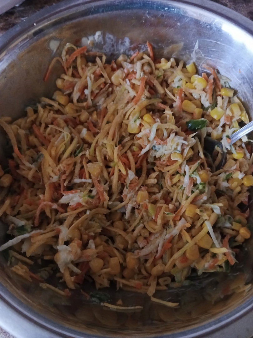 Ну и мастер к машинке не пришёл, так что машинка пока остаётся котиковым домом. А я весь день ждала этого мастера, надеялась и верила. Вообще у меня на тему ремонта техники скоро будет невроз. После прошлой истории со стиральной машинкой я начинаю всех заранее подозревать) Сейчас вроде и с сайта нормального вызывала, но звонили не с местного номера, с Московского - я уже всё, чешусь сразу вся. Ну вроде нормально, пообещали что мастер перезвонит - и где он? Снова подозрительно. Ну вот раз дома сидела, заодно решила ударными темпами скармливать семейству морковку и прочие запасы. В салат ушла морковь, дайкон (не весь, ещё есть), завалявшийся в холодильнике огурец и банка кукурузы (ну это не запас, это расходник) Салата сразу тазик, чтобы внушительно. Ещё морковь пошла на зажарку для ячневой каши. В мультиварке обжариваю лук и морковь, потом засыпаю ячку, солю, заливаю водой и ставлю на режим гречка. Ячки ещё много, надо её есть. Ещё испекла черемуховый тортик с черемухой, которую ещё до