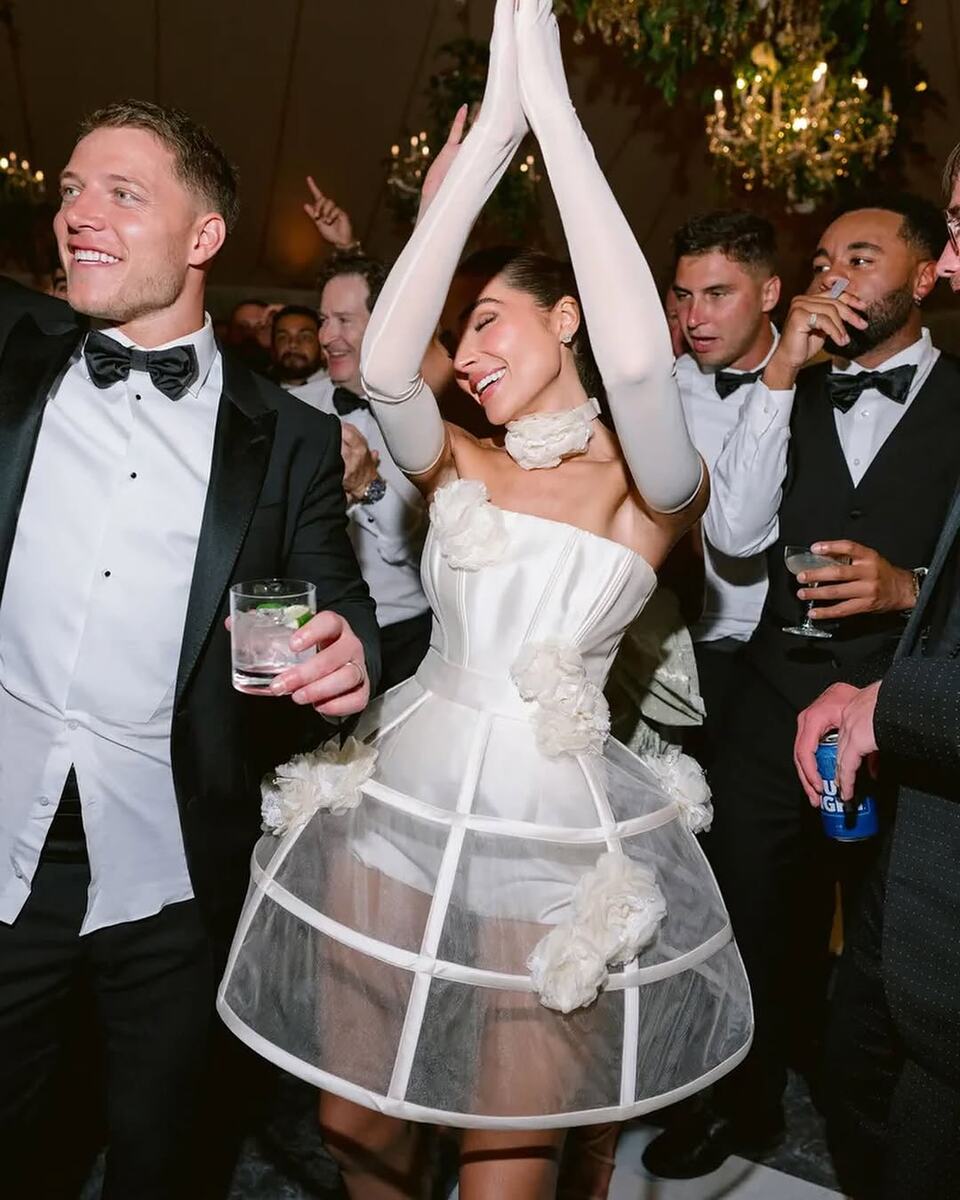 Американская модель и победительница конкурса «Мисс Вселенная-2012» Оливия Калпо вышла замуж за футболиста Кристиана МакКэффри. Торжество проходило летом в родном городе невесты — Род-Айленде. Поэтому и наряды она выбрала под стать.