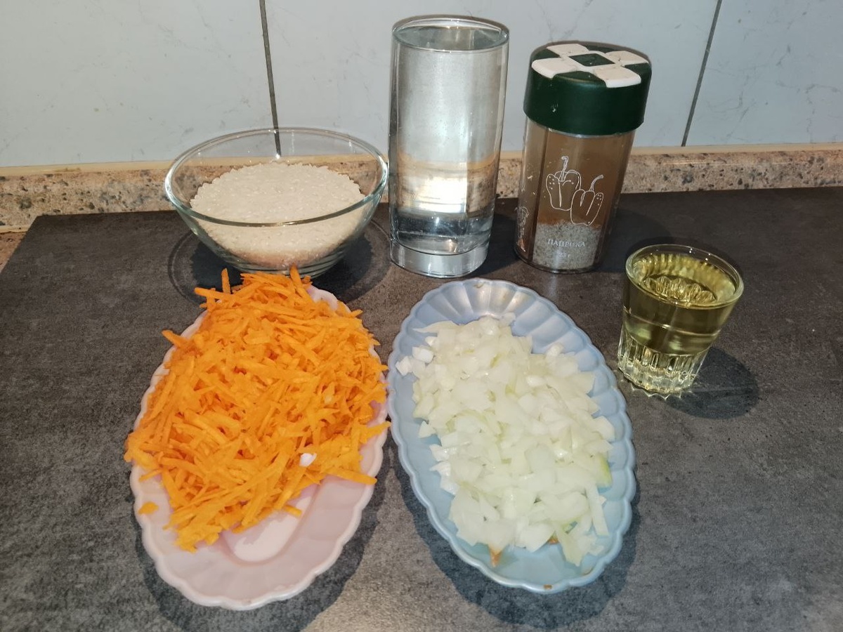 Рис, пожалуй, это тот злак, который в той или иной форме любят все. Чаще всего жалуются, что не получается сварить рассыпчатый рис. Важны пропорции рис : вода, а также качество самого злака. Подробный рецепт рассыпчатого риса есть на моем канале. Он прекрасно сочетается с овощами, причем с самыми доступными: морковью и луком. Если правильно приготовить, то получится очень вкусное базовое блюдо. Нам понадобится: Шаг 1. Промыть рис в 3-х водах, немного перетирая его пальцами, чтобы смыть крахмал. 1-я вода. 2-я вода. 3-я вода. Сильно усердствовать не нужно, такк ак можно разрушить оболочку. Шаг 2. Лук и морковь почистить и покрошить. Морковь натереть на крупной терке, а лук мелко порезать ножом. Общее количество очищенных овощей по этому рецепту равно количеству сухого риса. Шаг 3. Разогреть сковороду или сотейник, налить 50 г растительного масла и бросит 1 дольку измельченного чеснока. Масла нужно 2-3 ложки, чтобы оно покрыло дно сковороды или сотейника, в к