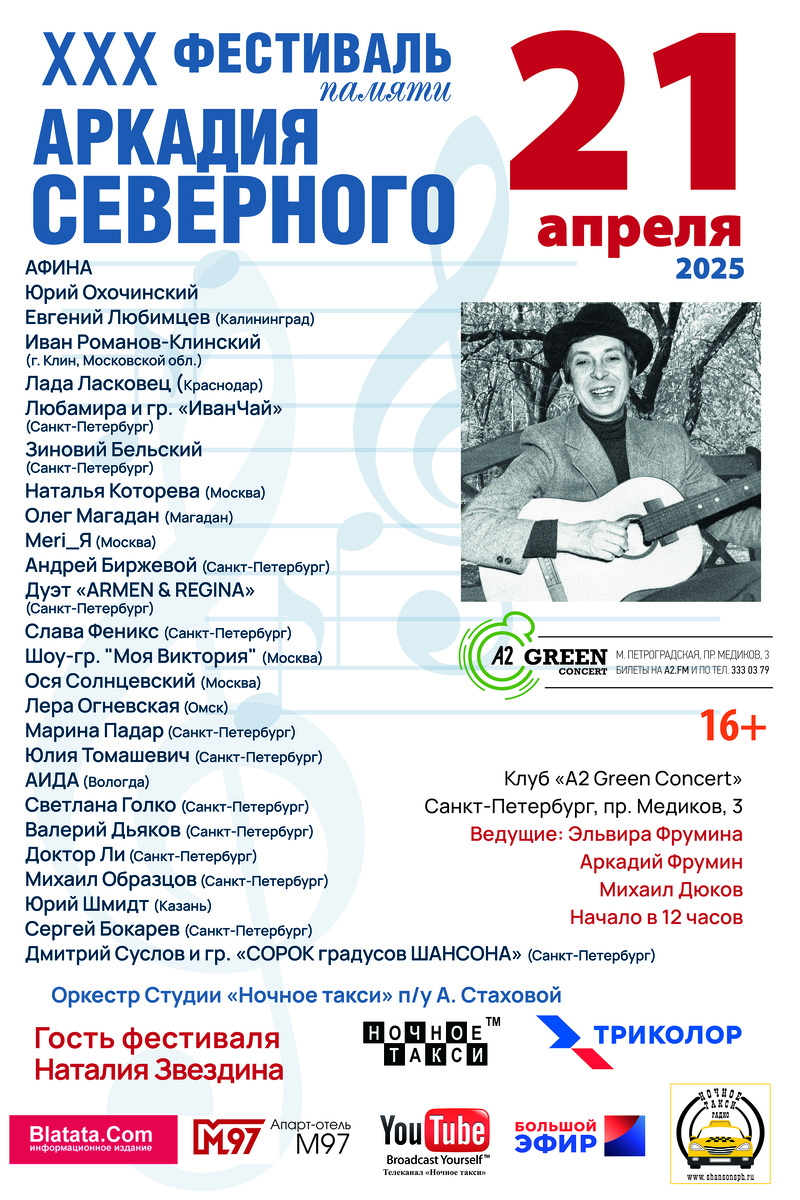 Студия "Ночное такси" принимает заявки на участие в 30-м юбилейном Фестивале памяти Аркадия Северного.