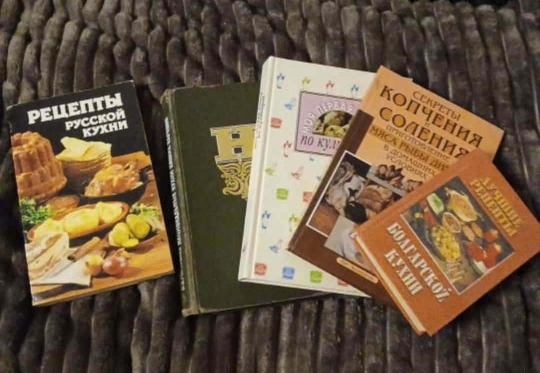 Всем доброго времени суток , мои дорогие друзья , подписчики и гости моего канала ! Наконец сегодня ситуация с персоналом на работе немного улучшилась и я продолжаю рассказ о продажах января , а вернее почти его заканчиваю... Следующая продажа случилась из моего профиля ...а продавала я термокружку ,фото не сохранилось , впоследствии Вы поймёте,почему Кружка была новая ,в упаковке , но для фото из упаковки я ее вытащила и вдобавок рядом с ней положила для антуража кулинарные книги .., вот эти.. В течение недели люди что -то смотрели , теперь я уже не скажу ,что именно ...И вот спустя неделю пишет мне женщина ,а не продаются ли случайно книги около кружки😱.. Я конечно собиралась их продать ,но пока не обладала лимитами в категории книг...я спросила ,какие книги ее интересует , она сказала ,что интересны болгарская кухня и рецепты русской кухни . .я ей сказала забирайте тогда все и лотом ...убрала с фото кружку и поставила цену 350 р , предварительно спросив ,устроит