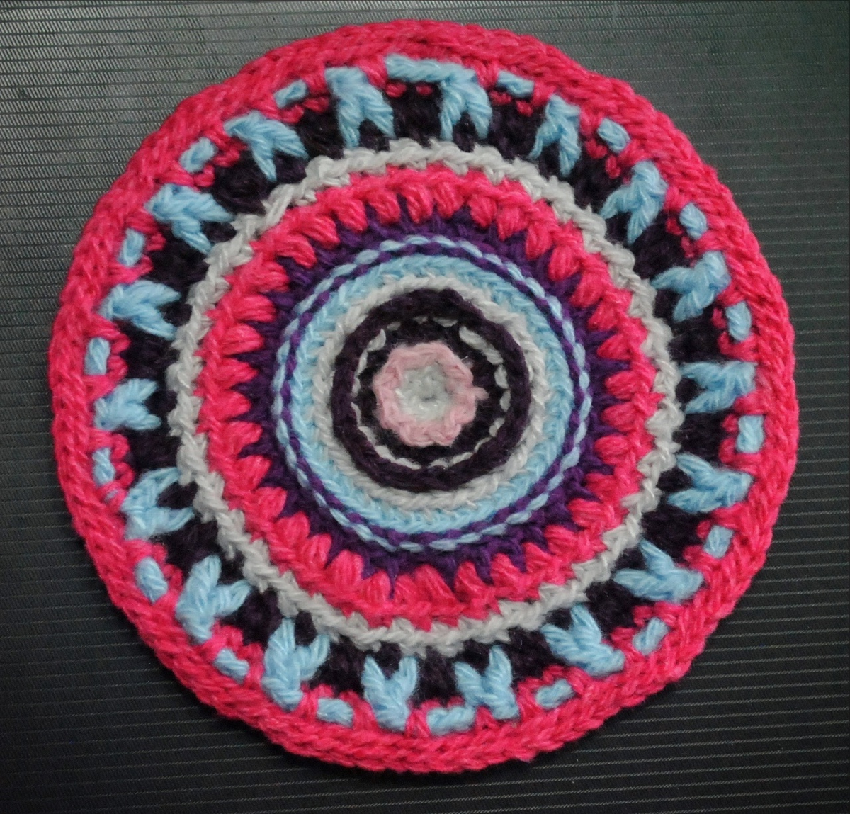 Новый КРУГ кружок, связаный крючком. Цветное рельефное вязание. Сиреневый.