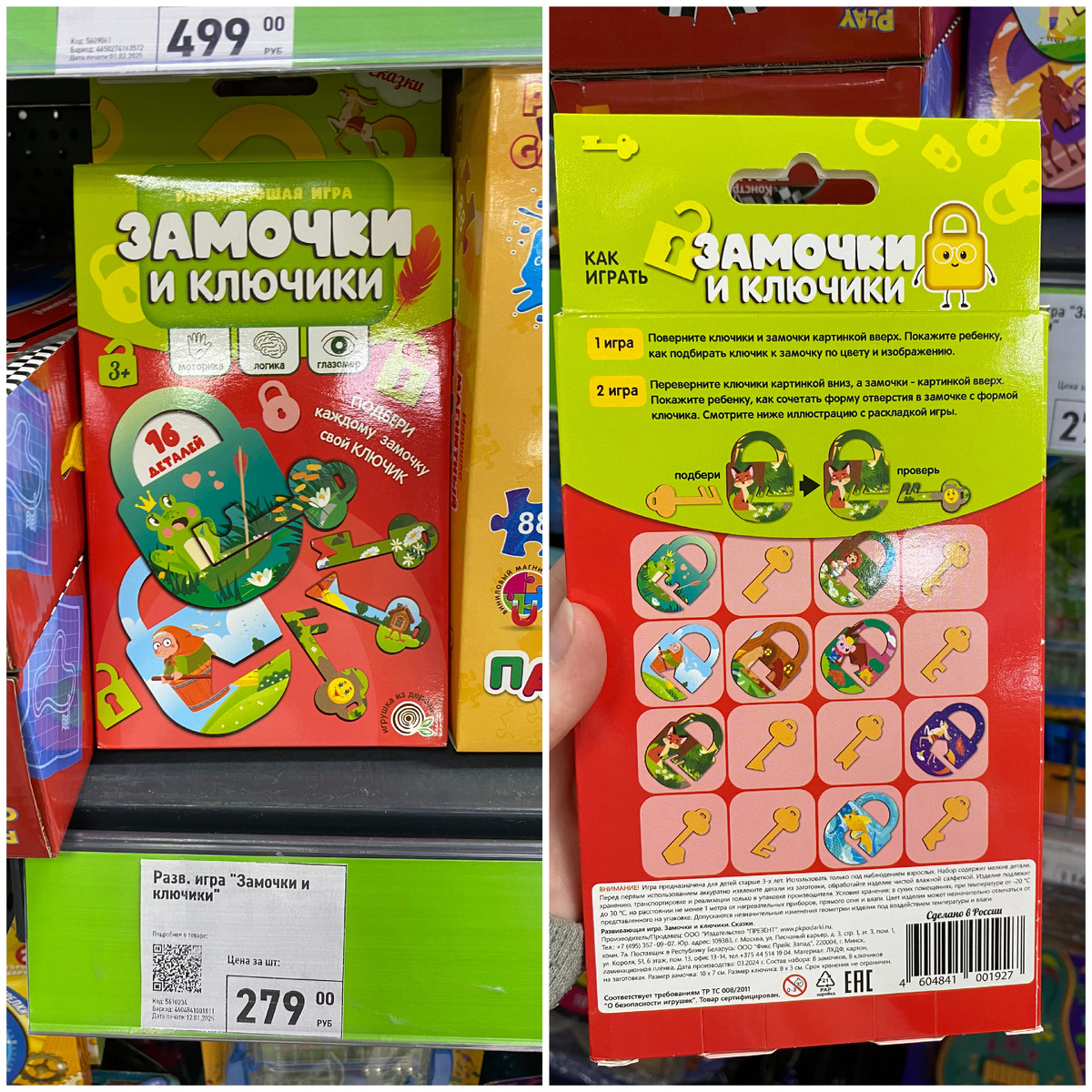 Всем привет. Меня зовут Наталья. Я очень рада видеть вас на своём канале. Сегодня мы с вами прогуляемся по магазину Фикс Прайс, который находится по адресу: город Йошкар-Ола, улица Воинов Интернационалистов, дом 25в. В этот раз я хотела совершить несколько покупок, но не нашла то, что мне было необходимо. Зато я нашла интересные новинки. Так что устраивайтесь поудобнее. Желаю всем приятного времяпровождения. Развивающая игра "Замочки и ключики" стоимостью 279 рублей. В наборе: 8 замочков и 8 ключиков на заготовках. Размер замочка 10х7 см, размер ключика 8х3 см. Состав: ЛХДФ, картон, ламинационная плёнка. Страна изготовления Россия. В магазине 8 вариантов. Пластилин пастельный стоимостью 174 рубля 50 копеек. В упаковке 16 цветов. Страна изготовления Россия. На упаковке есть 2 мастер-класса по лепке зайчика и десерта. Набор для творчества с восковыми мелками стоимостью 83 рубля. В наборе: 6 раскрасок и 8 восковых мелков. Страна изготовления Россия. В магазине 5 вариантов. Креативный бло