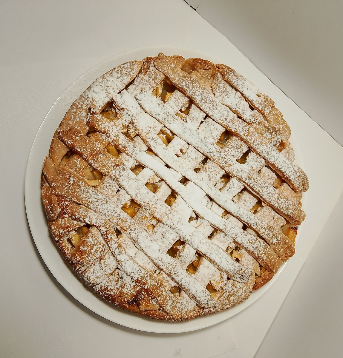 Всем привет 👋. Сегодня я покажу вам очень простой и быстрый рецепт вкуснейшего яблочного пирога . Для начала нужно включить духовой шкаф и выставить температуру 180-200° в зависимости от вашей духовки. яйца 2шт Ванилин 1 пачка (по желанию) Сахар 180гр Мацони или ( сметана 15%) 200гр Масло сливочное растопленное 100гр Мука 300 гр Сода 1 чайная ложка Два крупных яблока 🍏 Сахар 100гр Сок лимона 10мл Все ингредиенты должны быть одинаковой температуры! Теперь берём форму в которой будем выпекать наш пирог , вливаем 80% теста и разравниваем После того как вылили тесто в форму добавляем начинку. В чашу с оставшимся количеством теста добавляем муку по две столовые ложки и вымешиваем до получения однородного плотного теста. Тесто кладём на стол посыпанный мукой и вымешиваем тесто. Далее режем тесто на ровные полоски. Теперь осталось только положить полосочки теста сверху на пирог и можно ставить в духовой шкаф на 30-40мин в зависимости от мощности вашего духового шкафа . Обязательно п