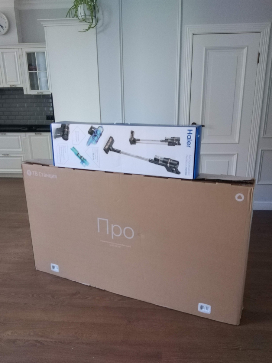 Много лет жил вообще без телевизора, ассоциации прям нехорошие были — ящик пропаганды и отупения))) Но времена меняют технологии... И вот уже почти год назад в новой хате поселились два телека, один нужен был не самый огромный, но большой, второй не самый мелкий, но крупный в спальню...) Первым приехал большой. Делюсь опытом за год. Оба телека с Алисой, большой 65 дюймов — флагман, с индексом Pro. Временно, на недельку, он встал на ножки в спальне, на фото чётко видно, что он абсолютно плоский и реклама не врёт — крепится вплотную к стене... Комплект крепления просто идеальный, есть огромный шаблон на картоне, шарнирный кронштейн и 4 магнита по углам... Т. к. телевидения в классическом понимании у меня нет, для подключения мне нужна была только розетка 220 и, естественно, интернет, но он беспроводной... И красавчик повис на стене, и к красавчику ниоткуда не тянуться провода!) Углы обзора шикарные, с площади в 50 кв. объединённых кухни и зала картинка смотрится отлично.) Кром