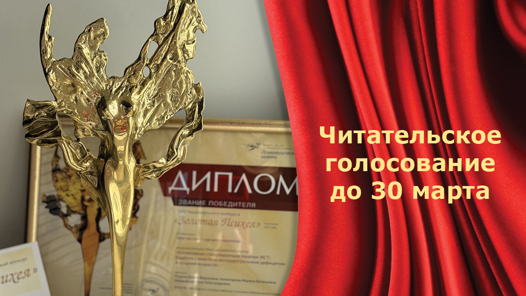 XXVI Национальный конкурс «Золотая Психея» проводит читательское голосование по выбору финалистов конкурса по итогам 2024 года по следующим номинациям: Голосование продлится до 30 марта 2025 года онлайн на сайте «Психологической газеты». Далее в ходе голосования Большого жюри будет определен победитель в каждой основной номинации. Торжественная церемония объявления и награждения победителей XXVI Национального конкурса «Золотая Психея» по итогам 2024 года состоится на 19-м Саммите психологов 1 июня 2025 года (Санкт-Петербург). Полный список финалистов формируется в течение 15 дней после завершения голосования Экспертного совета, зарегистрированных членов «Психологического клуба» и редколлегии «Психологической газеты», плановая дата объявления финалистов — 15 апреля. Для голосования необходимо авторизоваться на странице конкурса, найти интересующий проект в перечне номинантов и отдать свой голос за него. По давней традиции широкого обмена мнениями, во всех проектных номинациях зарегистри