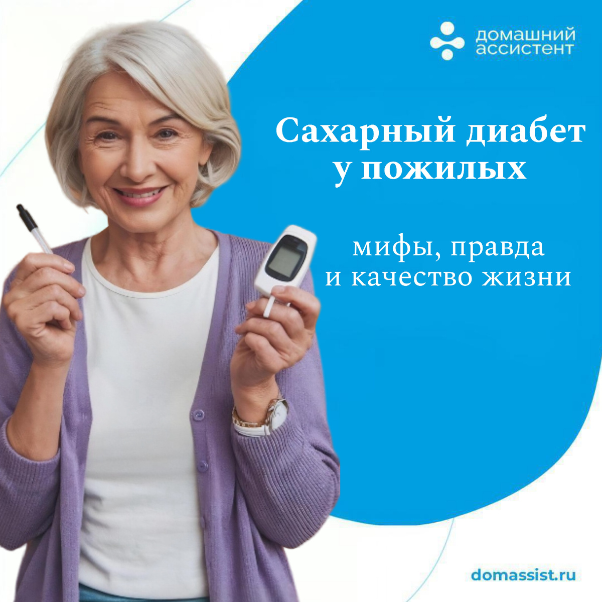 🤔 Что такое сахарный диабет? Сахарный диабет – это хроническое заболевание, при котором организм не может правильно использовать глюкозу. У пожилых людей чаще всего встречается диабет 2 типа. • Причины: снижение чувствительности клеток к инсулину • Симптомы: жажда, частое мочеиспускание, усталость • Факторы риска: лишний вес, малоподвижный образ жизни, генетика 🚨 Чем опасен диабет для пожилых? Сахарный диабет может серьезно повлиять на здоровье и качество жизни пожилого человека: • Повышает риск сердечно-сосудистых заболеваний • Ухудшает зрение (вплоть до слепоты) • Повреждает нервные окончания (диабетическая нейропатия) • Замедляет заживление ран • Увеличивает вероятность развития деменции 💪 Как жить с диабетом? Несмотря на серьезность заболевания, с диабетом можно жить полноценной жизнью: 🥗 Какие ограничения в питании? Диета при диабете не такая строгая, как многие думают: • Ограничить простые углеводы (сахар, выпечка, сладости) • Отдавать предпочтение сложным углеводам (цельно