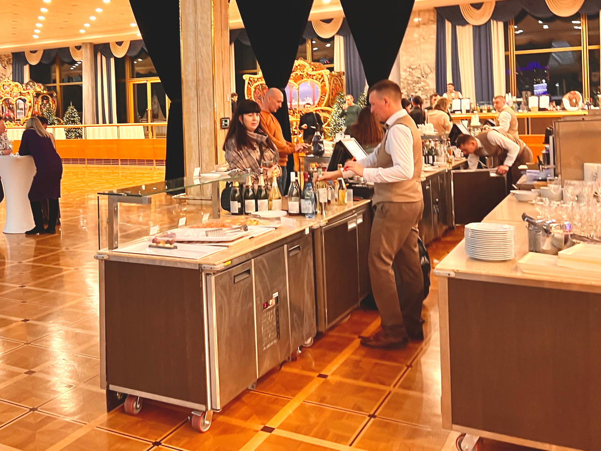 Джентльмены в белых рубашках наливали напитки в бокалы и выдавали закуски. Не бесплатно, конечно же.