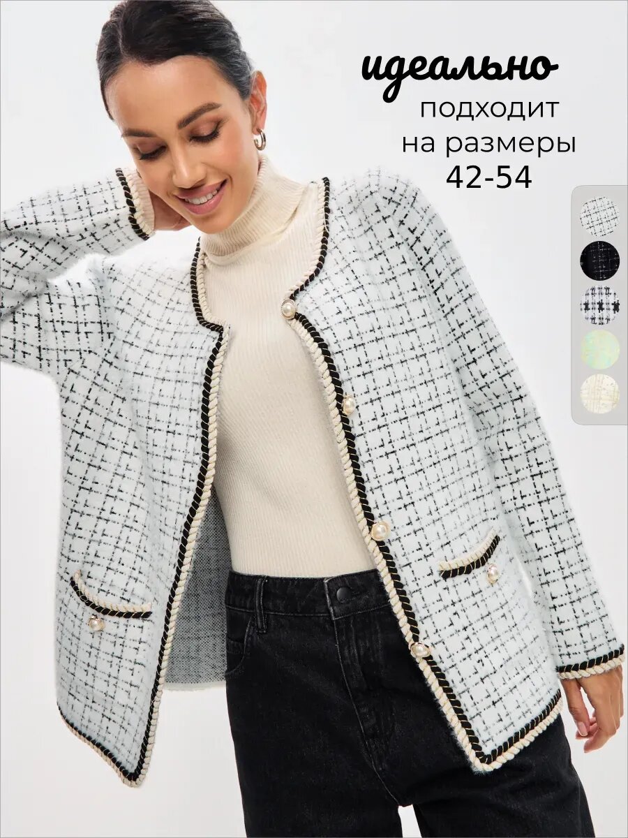 Этот стильный женский демисезонный жакет станет прекрасным дополнением гардероба. Выполненный из шерсти, он обладает теплой текстурой и идеально подходит для демисезонной погоды. Вязаный твидовый материал добавляет вещи интересный вид, а укороченная форма подчеркивает женственную фигуру. Пиджак обеспечивает комфортную посадку, создавая приятное ощущение при носке. Кашемир в составе изделия делает его особенно мягким и уютным. Приталенный силуэт создает элегантный образ, который уместен на деловых встречах и праздничных мероприятиях. Яркие акценты в виде пуговиц на карманах делают жакет выразительным элементом верхней одежды. Эта модель станет базовым элементом любого наряда благодаря универсальности кэжуал стиля. Она хорошо сочетается как с брюками, так и с юбками разных моделей и фактур. Качественные материалы гарантируют долгий срок службы изделия независимо от частоты носки. Жакет выполнен в классическом стиле, что делает его подходящим для большинства ситуаций: от офисных будней до