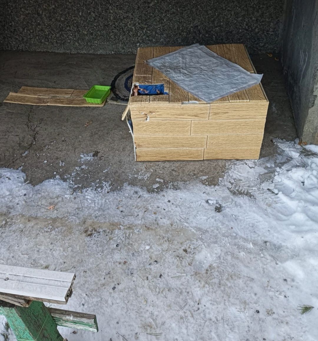 Почти две недели уже прошло с того дня, когда наша передержка пополнилась вот таким очаровательным семейством. Это сейчас на них смотреть одно умиление, а начиналось все ужасно. Узнали, что под балконом одного жилого многоэтажного дома в мороз, а как раз тогда на улице было минус 17, котилась бездомная кошка. Она жила в подвале этого дома, но "добрые люди" заколотили все продухи и бедняга осталась на улице. Увидела её женщина из этого дома, которая знает нашу Ирину и ей позвонила. Узнав об этом, мы просто были в ужасе. Кошку даже не занесли в подъезд. Поняв, что если не мы, то никто, поехали за семейством, моля Бога, что ещё не поздно и они не околели от холода. Картина под балконом выглядела к приезду наших девочек прям скажем красивая. Кто-то успел соорудить им коробку, наверное гордясь своим поступком. Но эта коробка на таком морозе буквально через несколько часов, если не раньше, стала бы камерой смерти для семи крошек, только что появившихся на свет. Мы успели. Котята все живы, ед