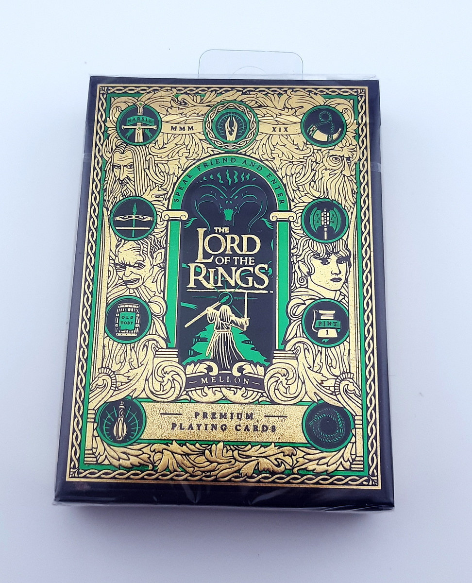 - Вес: 0,1 кг. Тематика: колода вдохновленная сагой Дж. Р. Р. Толкина. Дизайн карт погружает в атмосферу Средиземья. Колода выполнена в насыщенных цветах с золотым тиснением, что придает ей роскошный и изысканный вид. Каждая деталь проработана с огромным вниманием, делая эти карты настоящим произведением искусства для поклонников "Властелина Колец" и коллекционеров. Создана студией Theory11.