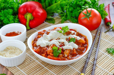 Ингредиенты: Рисовая мука- 200 гр Вода(горячая)- 100 мл Соль(щепотка)- по вкусу Для острого томатного соуса: Томатная паста - 4 ст.л Соевый соус- 2 ст.л Сахар- 1 ст.л Яблочный уксус- 1 чайн.л Растительное масло- 1 чайн.л Перец острый молотый( по вкусу) - 1 чайн.л Перец черный молотый - по вкусу Для сырного соуса: Сливочное масло- 1 ст.л Пшеничная мука- 1 сл.л Молоко- 200 мл Твёрдый сыр- 100 гр Перец чёрный молотый- по вкусу Соль- по вкусу Дополнительно: Лук репчатый - 1 шт Морковь- 1 шт Болгарский перец- 0.5 шт Чеснок- 1 зубч. Растительное масло- 1 стол.л Вода- 20 мл Приготовление: Подготовьте продукты. Для самих токпокки подойдет любая рисовая мука. Воду возьмите фильтрованную или бутилированную. Масло для томатного соуса берите рафинированное, без запаха. Вместо яблочного уксуса подойдет винный или столовый обычный. Количество перца регулируйте по своему вкусу, можете положить больше или меньше. Для сырного соуса выбирайте хорошо плавящийся сыр. Хорошо подойдет моцарелла (которая н