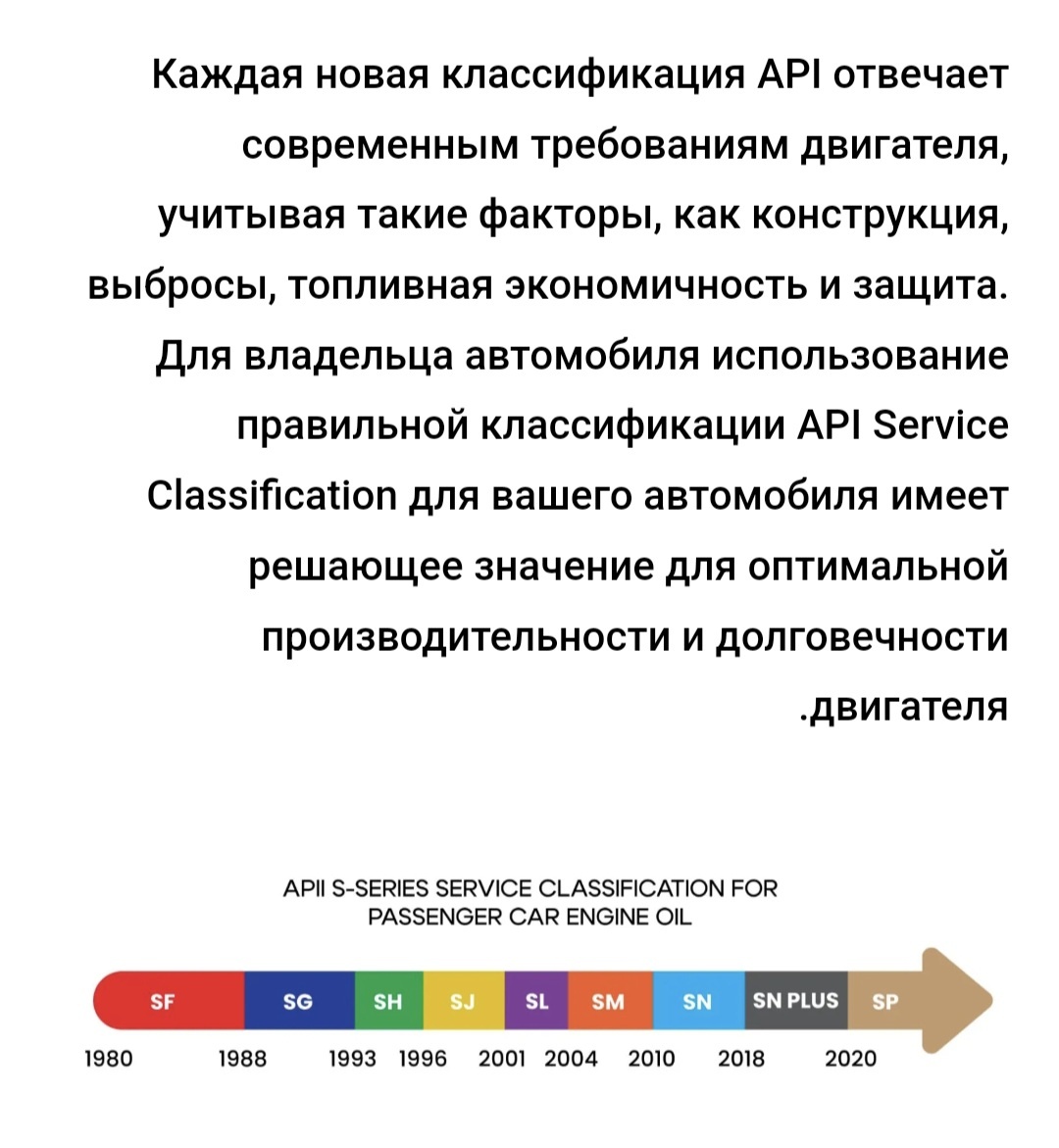 API SM: улучшено по сравнению с API SL, контролирует отложения в двигателе и снижает расход масла. Оно было предназначено для двигателей конца 2000-х годов и по-прежнему обеспечивает хорошую защиту для старых автомобилей. Для новых моделей может потребоваться более продвинутая классификация.