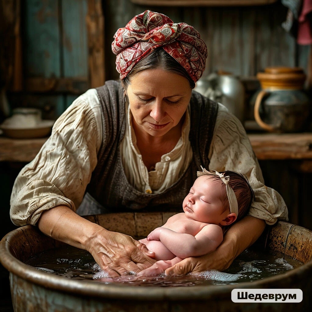 -Не так... - забрала малышку, завернула в тонкую пелёнку и осторожно начала погружать её в воду.