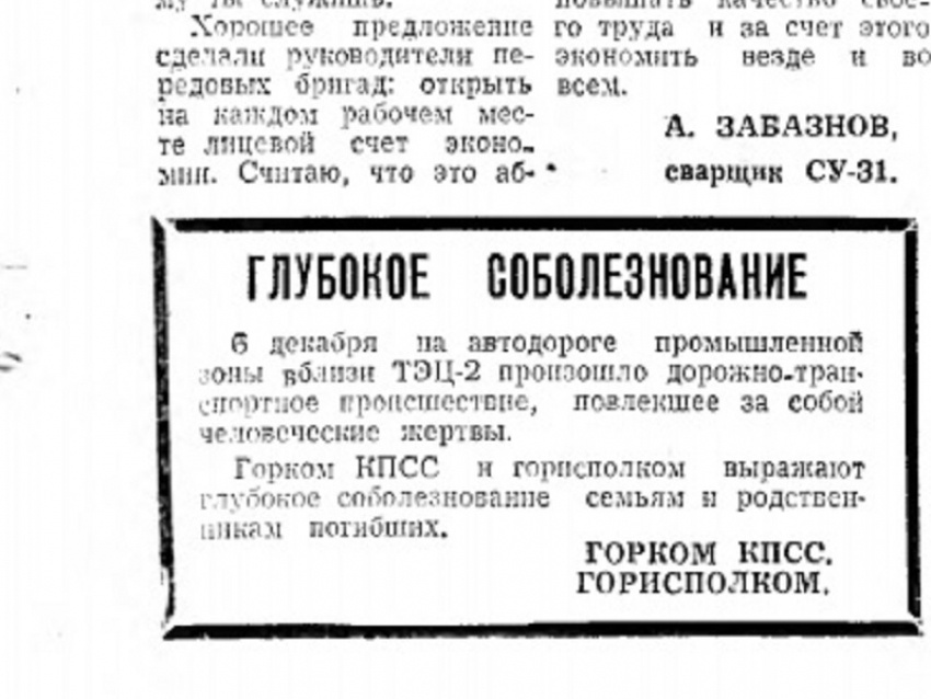Вечером 6 декабря 1984 года на 6-й Заводской улице рядом с Волгодонской ТЭЦ-2 пассажирский автобус, в котором ехали строители, попал в струю острого пара из поврежденной трубы, проходящей над дорогой. По некоторым данным, от полученных ожогов скончались не менее 15 человек, другие пассажиры злополучного автобуса многие годы потратили на лечение или стали инвалидами.
