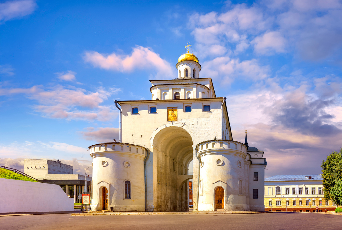 Визитная карточка Владимира, сохранившаяся с XII века. Это бывший въезд в город, украшенный золотым куполом. Сегодня внутри расположен музей с экспозицией, посвященной героической обороне города.