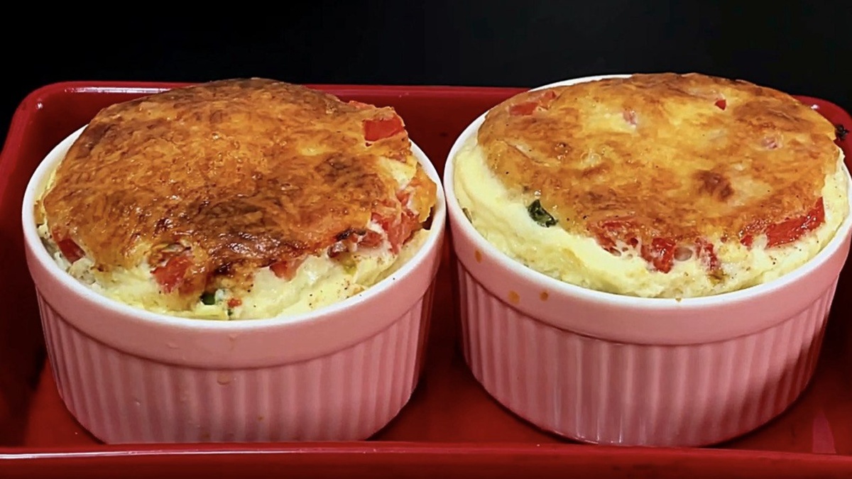 Я очень люблю омлет. И частенько делаю его с наполнителями. Сегодня покажу такой вариант с овощами. Это Порционный омлет. Ингредиенты (на 2 порции): 3 средних яйца (по 50 г каждое, итого 150 г); 150 мл молока (вес или объём яиц должен равняться объёму молока); Соль и любимые специи (например, чёрный перец или паприка); 2 ст. л. консервированной кукурузы; 1 помидор (лучше убрать мякоть и использовать только плотную часть, нарезанную кубиками); Зелёный лук — по вкусу (несколько перьев, мелко нарезанных); Тёртый сыр — для посыпки (примерно 2–3 ст. л.); Сливочное масло — для смазки форм. В миске смешайте яйца и молоко простой вилкой — не взбивайте до пены, достаточно легкого перемешивания. Добавьте соль и специи по вкусу. Две керамические формы объёмом 200 мл каждая. Смажьте их внутри сливочным маслом. На дно каждой формы посыпьте мелко нарезанный зелёный лук. Добавьте в каждую форму по 1 ст. л. консервированной кукурузы и кубики помидора. Залейте овощи яичной смесью. Сверху