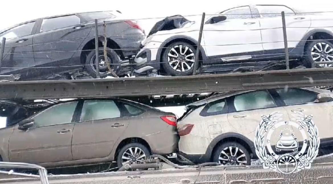 В ДТП в Башкирии попал грузовик, перевозивший легковушки
