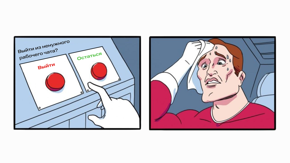 Нерабочие чаты важны для продуктивности — это хороший способ переключиться и сменить фокус. Поэтому делиться мемами, сохранять лучшие цитаты коллег или обсуждать последнюю серию сериала — это не пустая трата времени, а способ сохранять продуктивность.