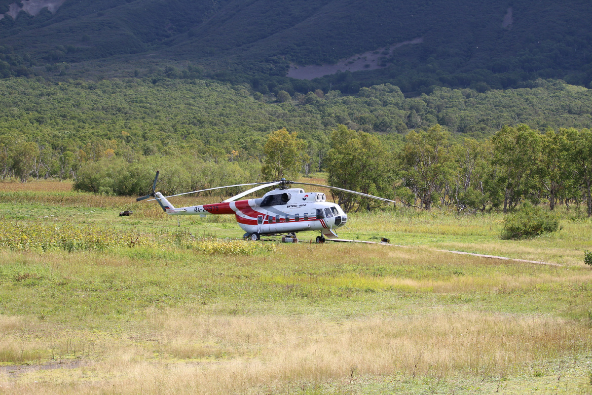 От вулкана Ксудач мы прилетели на вертолете к Ходуткинским горячим источникам. Слева домик - это раздевалка. Идем к ней. Вода около раздевалки очень горячая, 44 градуса. Дно илистое. Мелко. Если пройти вдоль речки Горячей дальше, там температура воды поменьше. Пришли. Дно илистое. Вода здесь не такая горячая, как у раздевалки. Глубина по щиколотку. Зашли, ноги погрели :) Вертолет пролетел над нами. Возвращаемся. Плакат на раздевалке. Еще плакаты. Обед. Идем к вертолету. Все надо увозить с собой, весь мусор. Не надо привлекать медведей. Река Горячая парит. На этом экскурсия закончилась. Летим домой. Продолжение следует... Начало Владивосток в сентябре Владивосток - Камчатка. Перелет Часть 1. Отель "Спутник" Часть 2. Поселок Паратунка Часть 3. Морская прогулка Часть 4. Петропавловск-Камчатский. Экскурсия Часть 5. Вилючинский вулкан Часть 6. Мутновская ГеоЭс Часть 7. Дачные горячие источники Часть 8. Водопад Снежный барс Часть 9. Сплав по реке Быстрой Часть 10. Малкинские термальные источ