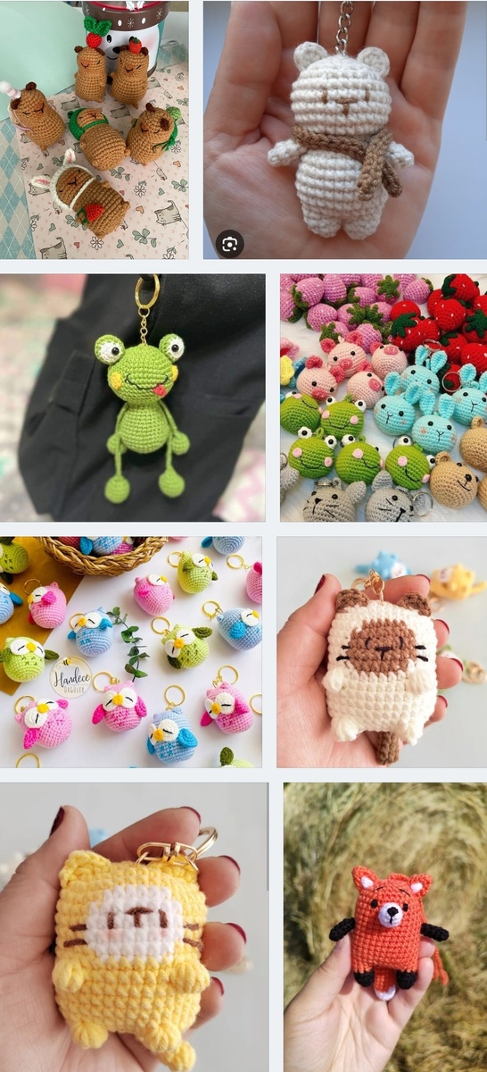 Приветствую всех кто заглянул ко мне в гости! Вот мой большой склад идей На просторах интернета нашла еще много идей маленьких игрушек! Их тоже можно связать из остатков пряжи! 🧶 В моем случае из хлопковой пряжи! Милейшие, правда!? Вот ссылочка🤗 Только, я думаю, времени займет не меньше, чем на большую игрушку! Если у вас есть идеи для брелков, напишите мне пожалуйста в комментариях, или просто вставьте фотографии! Спасибочки большое!