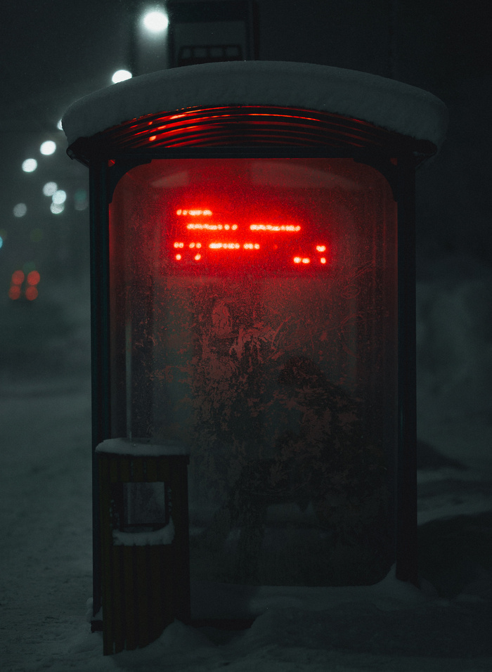 Для кого-то это просто остановка, а для кого-то смысл сделать хороший кадр. Всегда когда проезжаю мимо таких остановок замечаю этот красноватый цвет табло. Вместе с холодным, немного синим светом зимней ночи (между прочим комплиментарные цвета) может получится вполне неплохой кадр. Вот и в этот раз я решил, не проходить мимо и наконец сделать фото. Уже подходя понял что что-то получится: стекла на остановке были замерзшими и покрыты изморозью, а внутри сидел одинокий человек, ждущий свой транспорт. Это добавило к фотографии некую атмосферу уединения и размышлений. Пост автора a.vodnev. Читать комментарии на Пикабу.