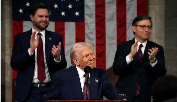 В своей самой длинной президентской речи перед законодателями он изложил своё видение своего второго срока, а республиканцы аплодировали ему за напряжённые шесть недель, которые изменили внутреннюю и внешнюю политику.