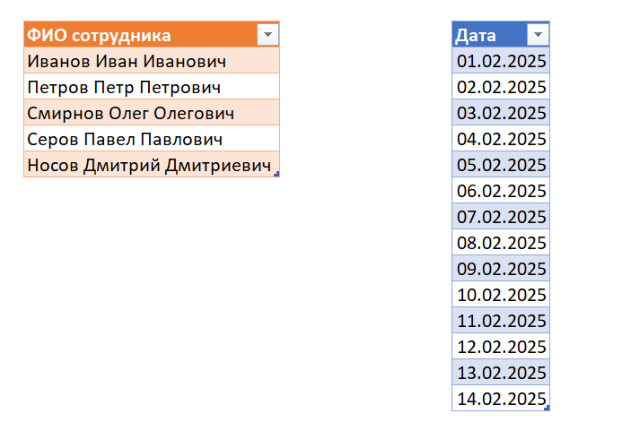 Готово! Теперь к каждому сотруднику подтянулся весь набор дат.