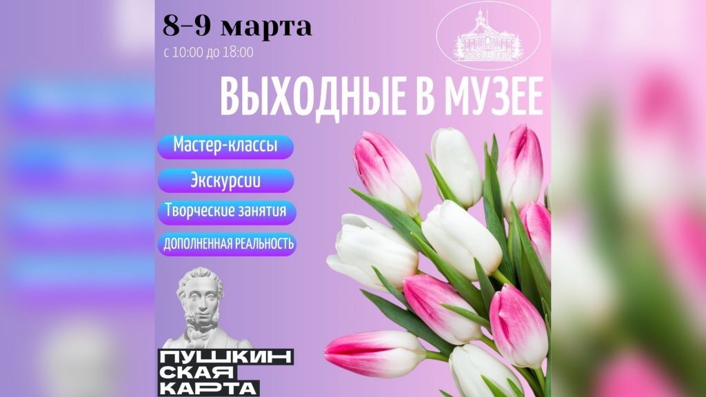Музей-заповедник приглашает азовчан и гостей города провести праздничные выходные интересно и познавательно. Для посетителей подготовлено сразу несколько тематических мастер-классов. 8 марта, суббота: 11.00 мастер-класс по живописи «Весеннее настроение»; 12.00 Творческое занятие для детей «Подарок для мамы»; 13:00 тематическое мероприятие «Экспедиция в прошлое»; 14:00 тематическое мероприятие «На перекрёстке миров и культур»; 15:00 тематическое мероприятие «Шедевры древних ювелиров». 9 марта, воскресенье 11:00 познавательно-творческое занятие «Век крепких челюстей: тайны динозавров»; 12:00 тематическое мероприятие «Тайный код Вселенной»; 13:00 тематическое мероприятие «На перекрёстке миров и культур»; 14:00 тематическое мероприятие «Шедевры древних ювелиров». Также в выходные дни доступны для посещения экскурсии с погружением в дополненную реальность. Билеты на все мероприятия можно купить по Пушкинской карте.
