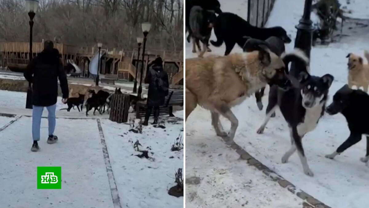 [ Смотреть видео на сайте НТВ ] В Таганроге недавний случай нападения своры собак на девочку и ее маму вскрыл серьезную проблему. События происходили в городском сквере — излюбленное место прогулок, которое теперь вынуждены обходить стороной. Территорию заняли бродячие псы, последняя их активность едва не стоила жизни — школьница с ней уже попрощалась, но на счастье появился очень громкий человек. Врываясь в городской сквер, автор этих кадров одновременно запустил и видеозапись, и режим первобытного защитника. Заглушая диким криком собственный страх, направил праведную ярость на стаю бродячих собак, которые окружили женщину с ребенком. Пока дикая свора с лаем металась по детской площадке, испуганная мать прижалась к скамейке, а дочь спряталась на горке. Мужчина же, не жалея голосовых связок, отчаянно пытался прогнать псов. В какой-то момент он и сам чуть не оказался в роли жертвы. Но, к счастью, на звуки спасительного рупора подоспел еще один очевидец. Совместными усилиями собак удалос