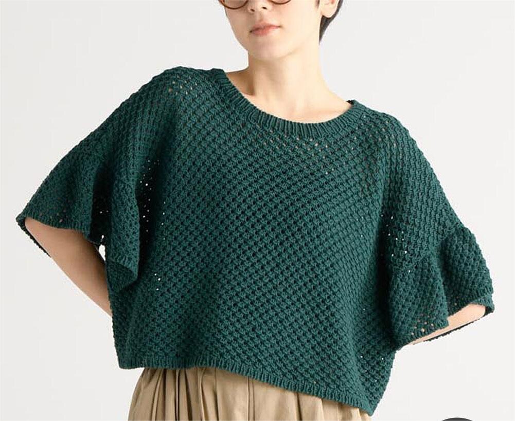 Вязание всегда было популярным ремеслом в Японии, которое развилось из древних техник рукоделия. И сегодня вязание в Японии популярно как никогда. Современные тенденции включают использование ярких цветов и геометрических форм. Западное вязание оказало значительное влияние на японский стиль. Внедрение новых материалов и техник позволило японским вязальщицам экспериментировать и внедрять инновации. Это слияние привело к уникальному сочетанию традиционного и современного стилей, что делает японское вязание самобытным и в высшей степени креативным. Современное японское вязание позволяет по-новому взглянуть на классические узоры. В этой подборке вы найдете новинки из японских журналов, но, к сожалению, без схем вязания. Каждая модель — это отражение лучших традиций японского мастерства, которые вдохновят вас на создание невероятных вязаных проектов. Создавайте вязаные изделия в японском стиле, которые станут настоящим украшением вашего гардероба. Топ с оборками оверсайз сочетает простоту и