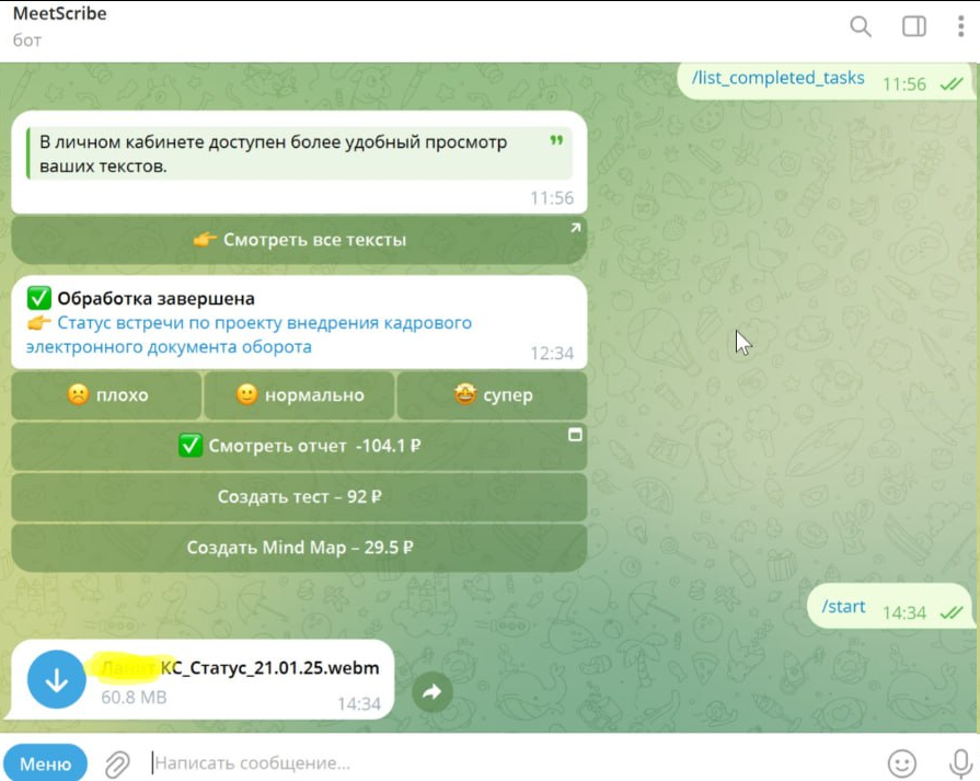 Основные требования к ним были сформулированы мной четко: автоматическая расшифровка аудио- и видеозаписей встреч, создание структурированной выжимки из ключевых моментов обсуждения, и, конечно же, формирование понятного и удобного протокола встречи.