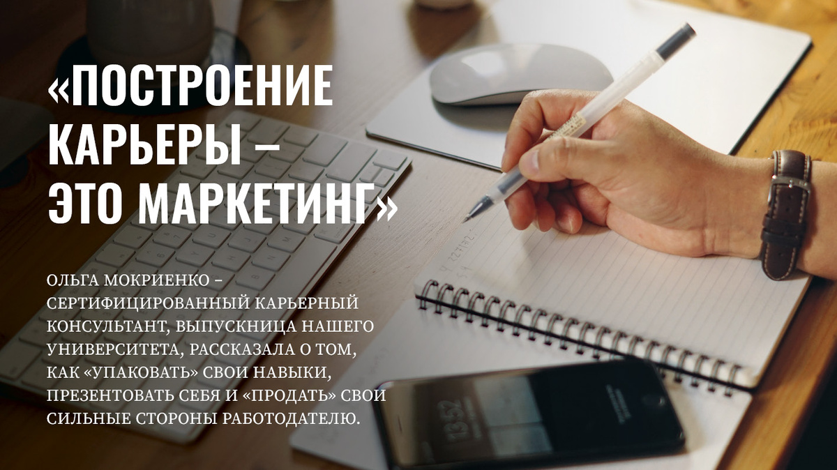 Ольга Мокриенко – сертифицированный карьерный консультант, выпускница нашего университета, рассказала о том, как «упаковать» свои навыки, презентовать себя и «продать» свои сильные стороны работодателю.
