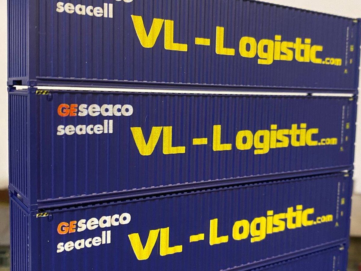 Модели контейнеров VL-Logistic изготавливаются из АБС-пластика, надписи на наносятся на окрашенный контейнеры методом фотополимерной печати, которая имеет ряд преимуществ по сравнению с тампопечатью и декалями.